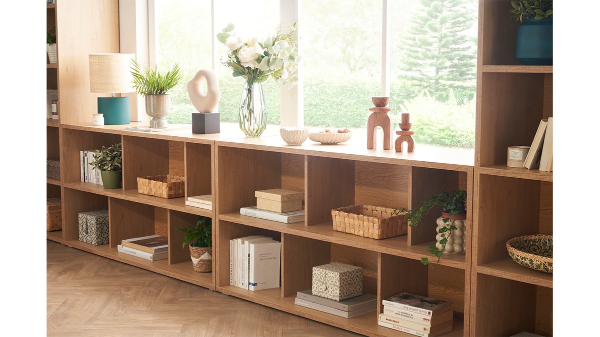 Pour le plus grand bonheur des amateurs de déco minimaliste, la bibliothèque EPURE joue la carte de la discrétion. Linéarité et couleur chêne composent ici cette bibliothèque moderne à la belle sobriété. Telle une page blanche, à vous de l’accessoiriser selon vos goûts ! Objets déco, livres ou encore magazines trouveront aisément une place au sein des 6 casiers qui composent cette bibliothèque bois clair. En plus d’être parfaitement organisés, ils permettront de personnaliser votre nouveau meuble de rangement à votre image.